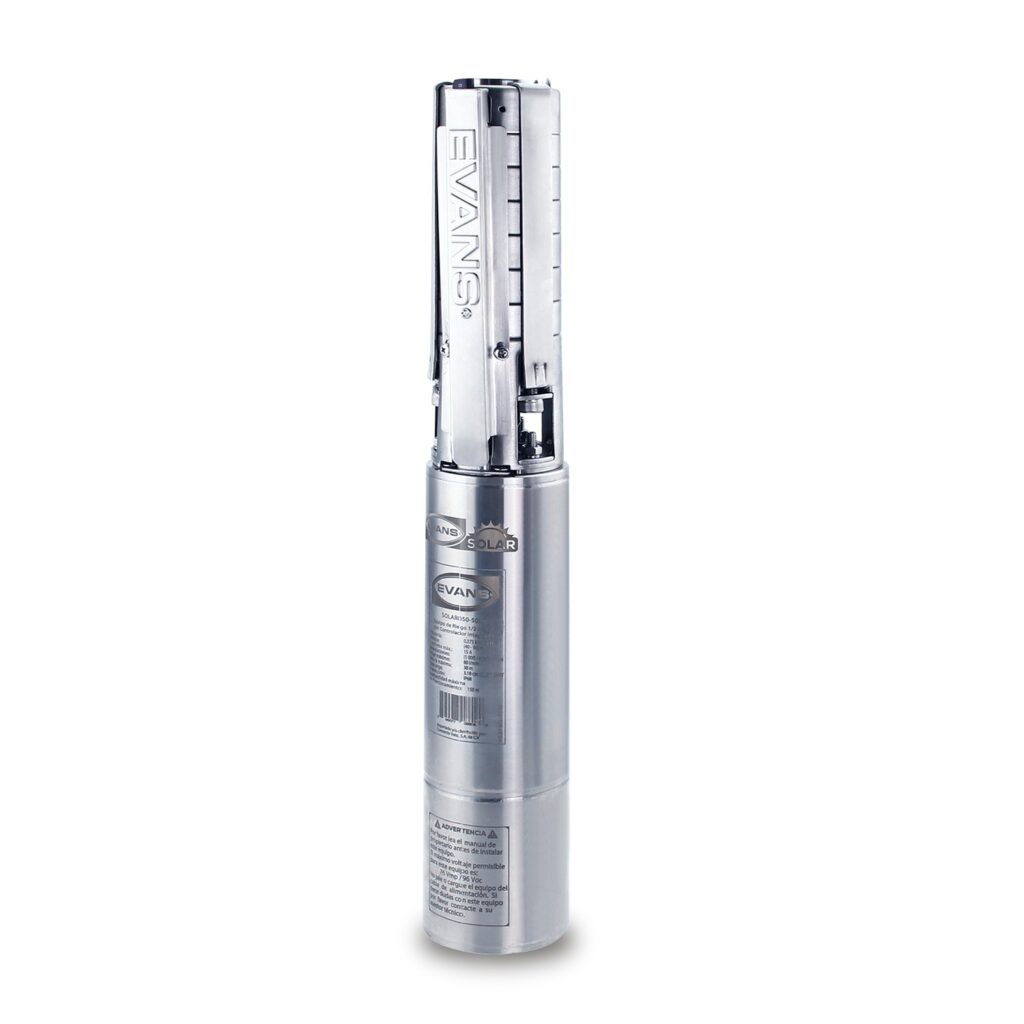 Equipo de Riego solar Evans sumergible 0.50 HP. Corriente directa. Flujo Optimo 35 LPM a 24 mts.